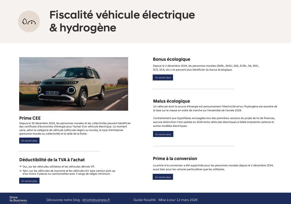 Structurez votre stratégie flotte en intégrant les aides disponibles et les spécificités fiscales des véhicules électriques et hydrogène.